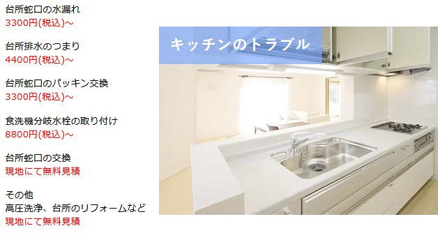 滋賀県で対応可能な台所(キッチン)の修理サービスとなります。その他のトラブルはお気軽に受付スタッフまでご相談ください。